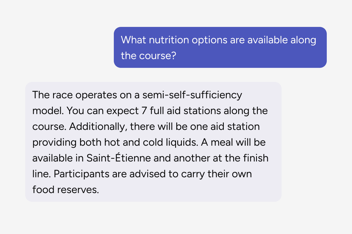 RunConcierge is proud to be a part of the 71st edition of the ASICS SaintéLyon. This AI-powered guide helps runners prepare for race weekend, navigate logistics, explore interactive course maps, and get answers to all their event questions.