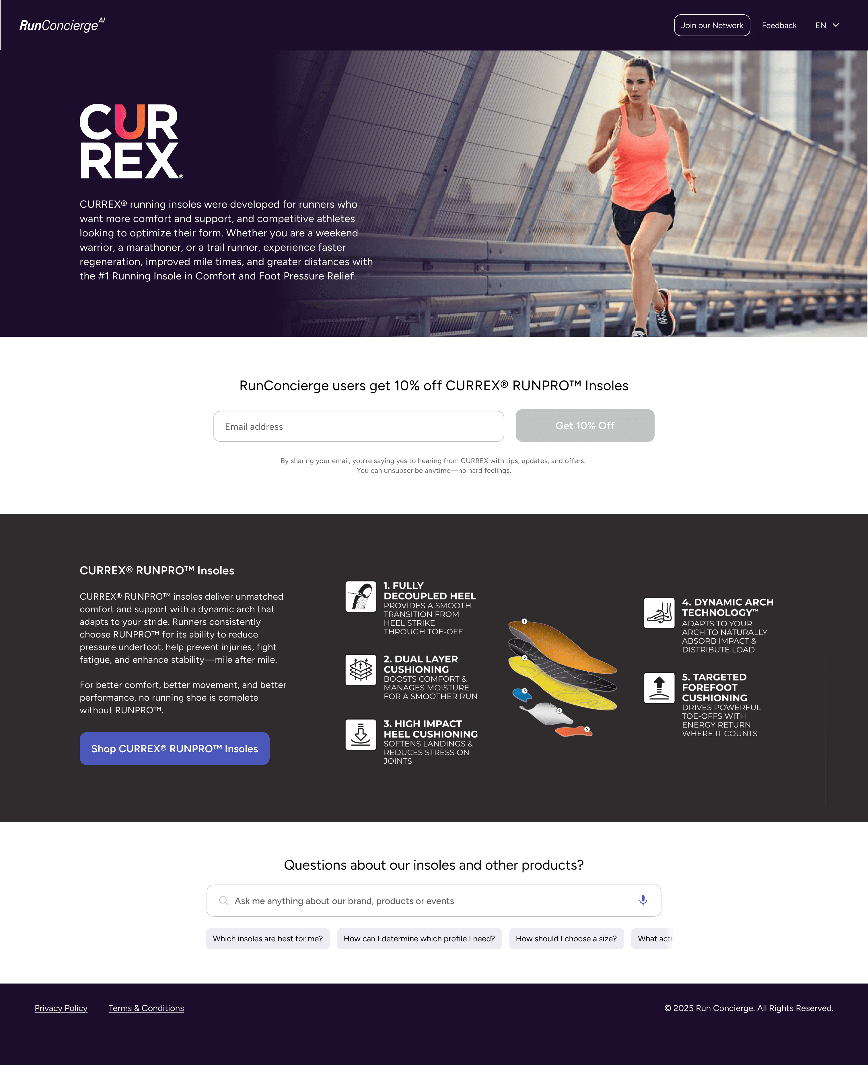 *Promotional fields for email addresses, deals, discounts and product questions may or may not be implemented depending on your brand's partnership with RunConcierge.
